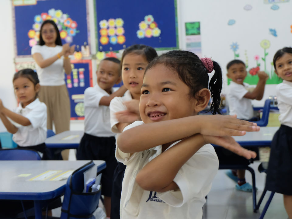 Our English program cultivates strong early literacy and language skills. Building on recognizing their names in print, children actively explore letter recognition and the sounds letters make (phonics). Children develop print awareness, understanding how books work and that print carries meaning. We engage in rich vocabulary building through diverse texts and discussions, fostering comprehension and expressive language. Through guided writing activities, they begin to form letters and explore written communication, establishing a strong foundation for reading and writing in future years.